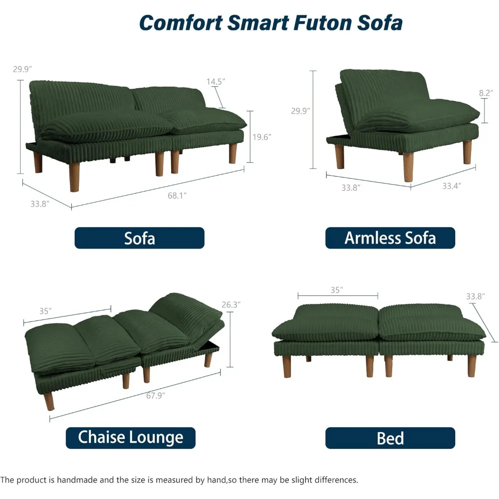 - Plush Corduroy Fabric: Upholstered in luxurious corduroy, whether you need a small futon couch space for your living room or a sofa futon for the bedroom, the soft fabric provides ultimate comfort