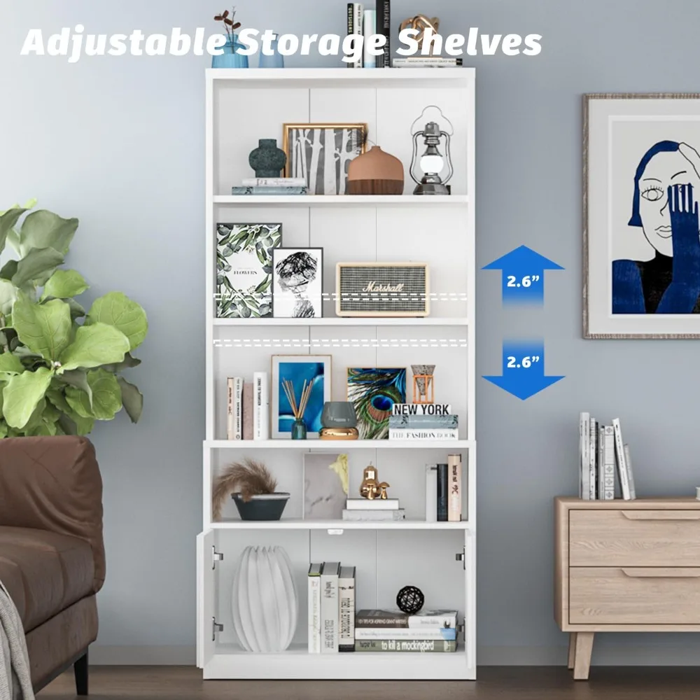 "70.9" Fluted Door Bookcase - Adjustable Shelves & Storage Cabinet, Modern Bookshelf for Living Room"