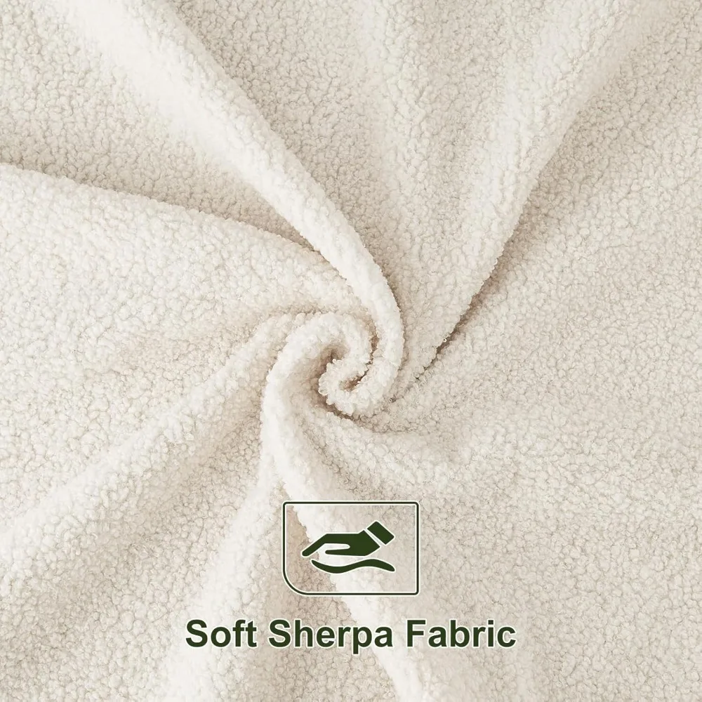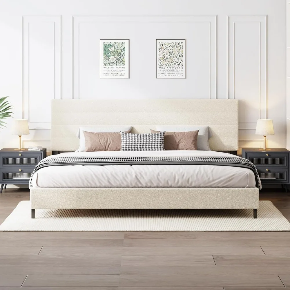 Bed Frame, Modern Sherpa Upholstered Bed Frame King with Adjustable Headboard, Wooden Slats Support Platform, No Box Spring
