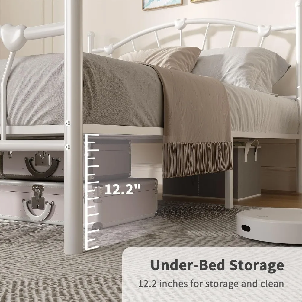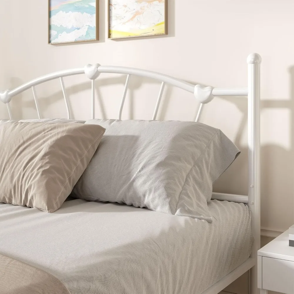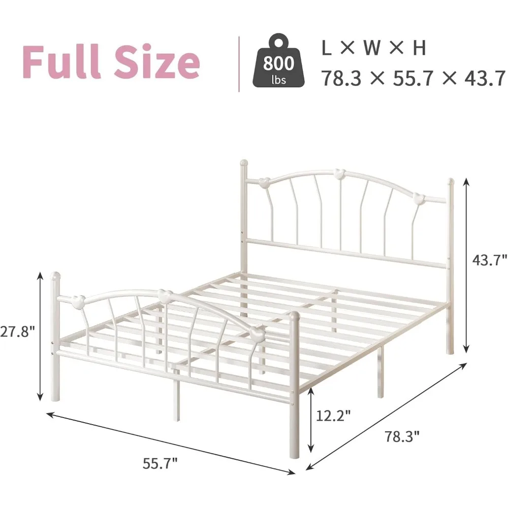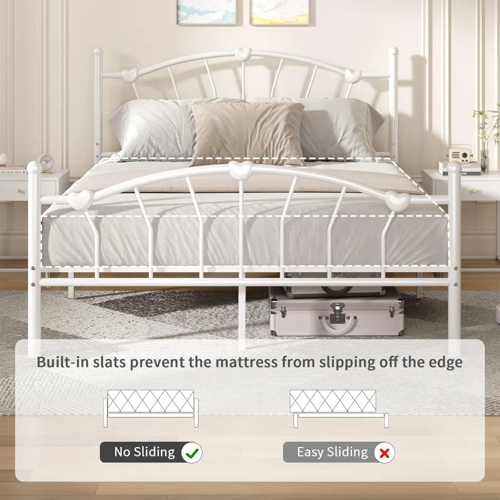 Metal Bed Frame, Bed Frame with Headboard, Heart-Shaped Decorative Headboard and Footboard, Heavy Duty Metal Slat Support