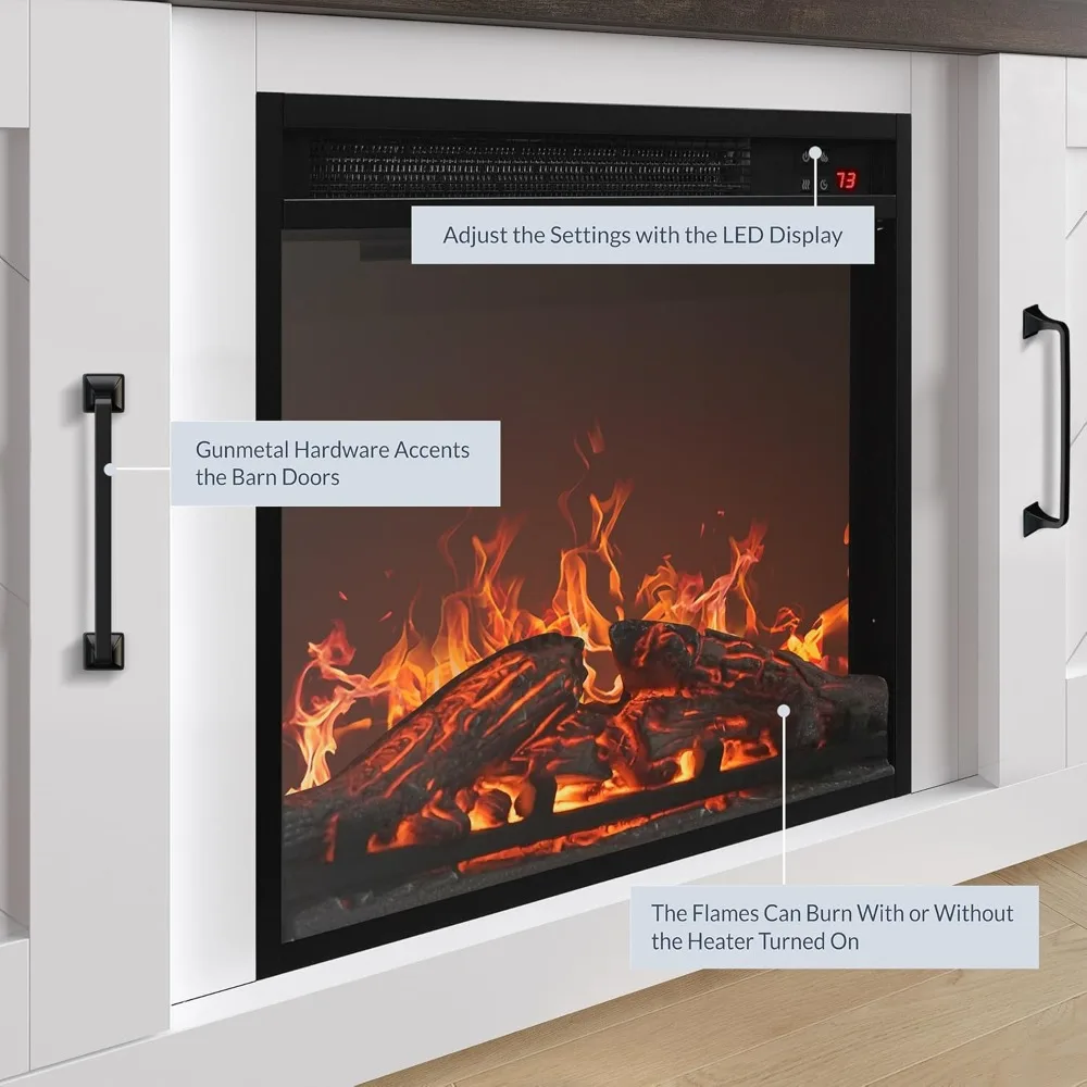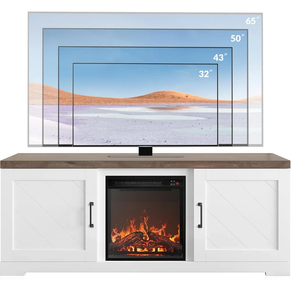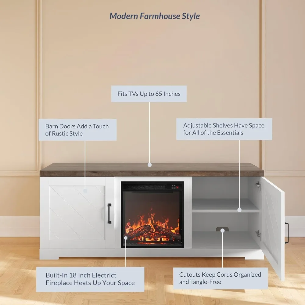 Modern 58" Farmhouse TV Stand with 18" Electric Fireplace Heater & Media Entertainment Center for TV up to 65", Console Table w