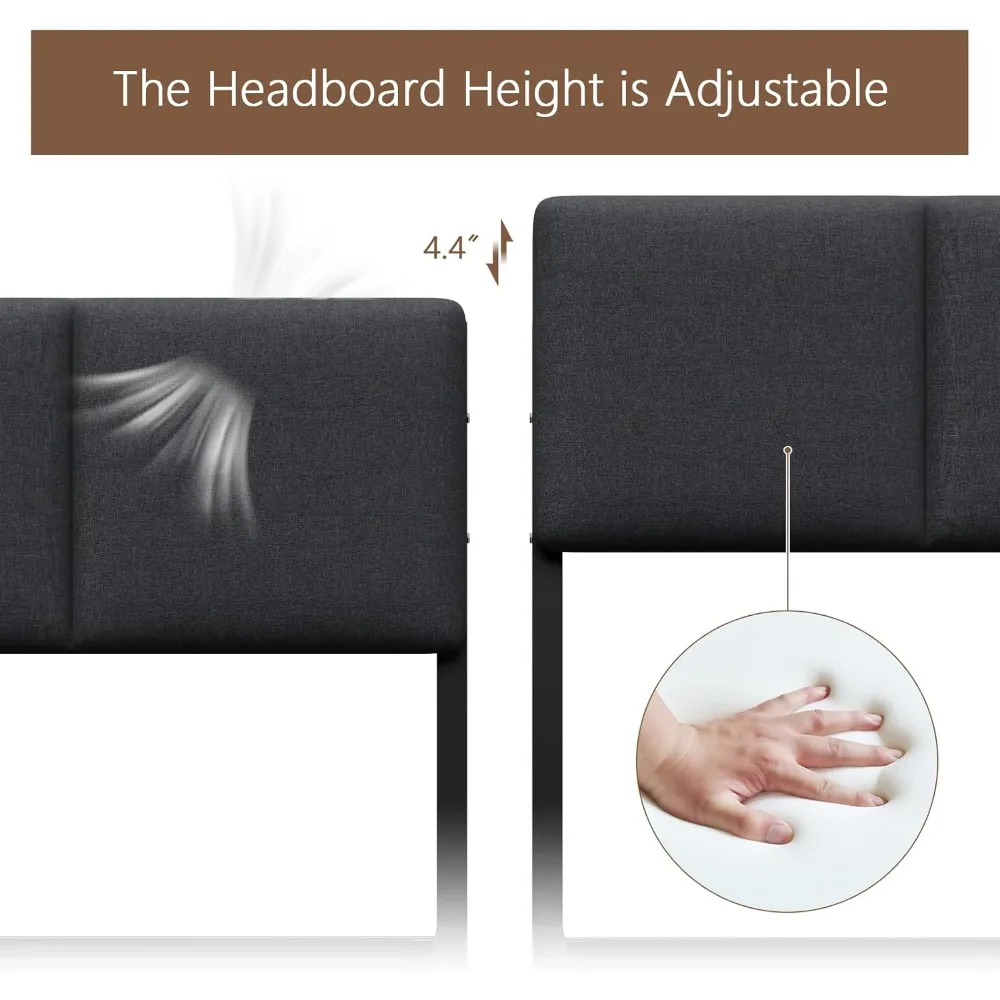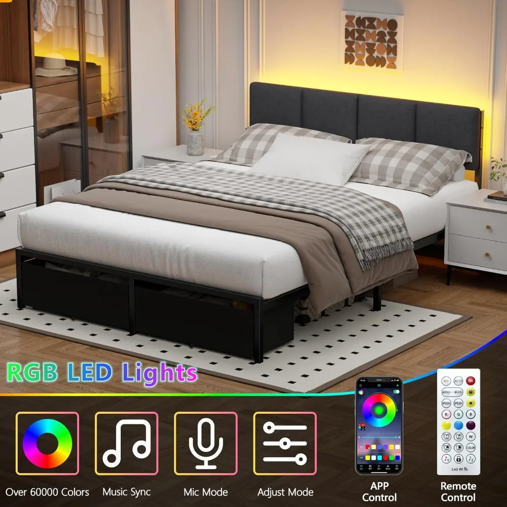 Queen Bed Frame with Headboard and Storage Drawer, Platform Bed Frame Queen Size, Upholstered Bedframe with Charging