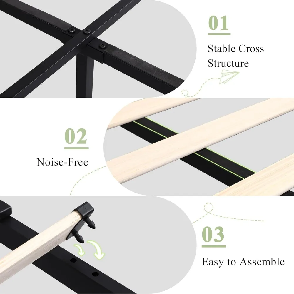 - Sturdy & Stable: Composed of a heavy-duty metal frame and solid wooden slats, ensure the firmness and stability of the bed frame, easily supports up to 1000 pounds