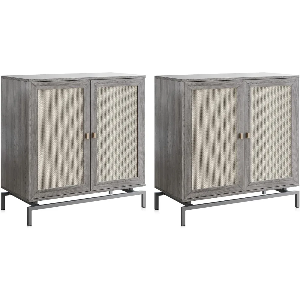 Set of 2 Sideboard Buffet Cabinet with Rattan Doors, Boho Buffet Table with Metal Base and Adjustable Shelves Accent Cabinet