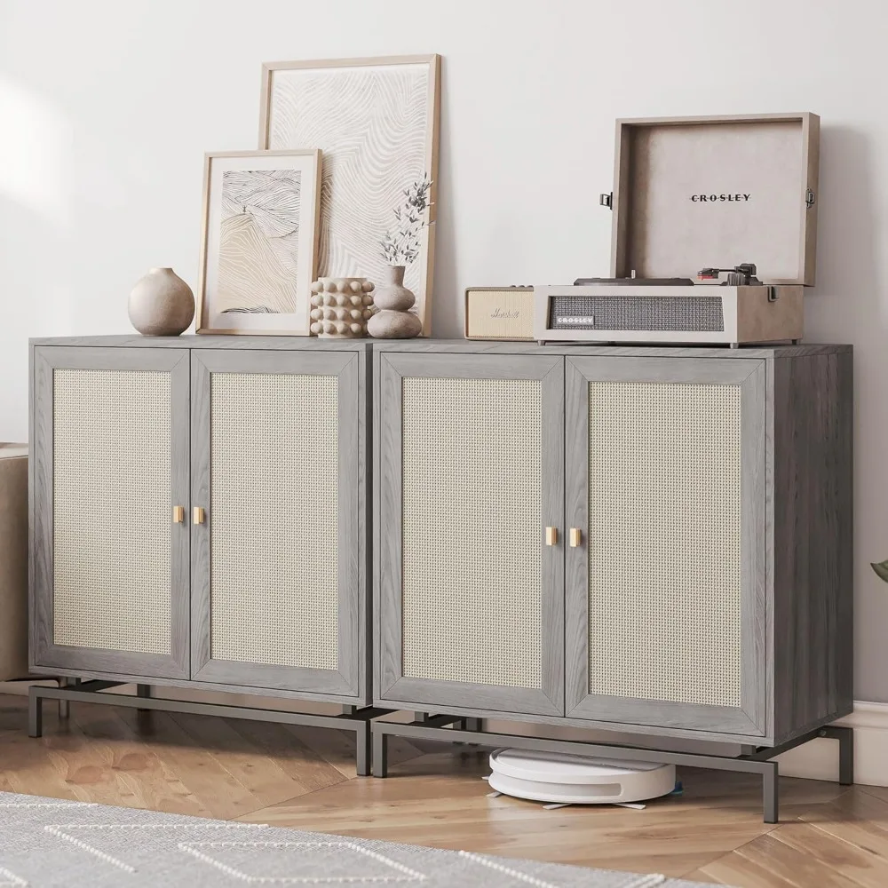 [Versatile Buffet Cabinet] - The sleek natural finish complements other modern furniture, and the rattan-decorated doors add the beauty of a traditional credenza and naturalistic aesthetic. This set of 2 accent furniture cabinets presents a PVC rattan design and a relaxing bohemian vibe that'll add a sense of comfort to your life.