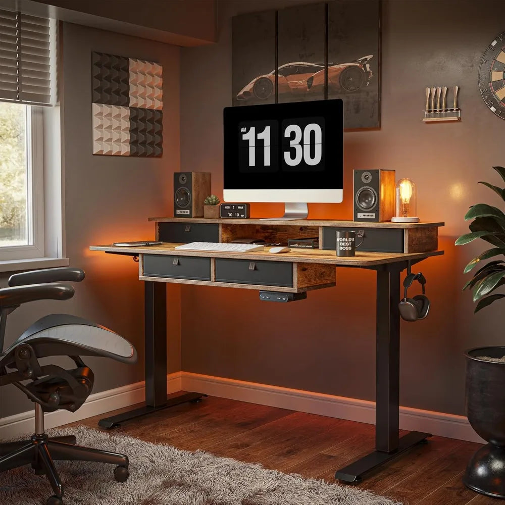 48 x 24 inch Electric Standing Desk Adjustable Height with 4 Drawers, Sit Stand Desk, Home Office Stand Up Table with 4 Height