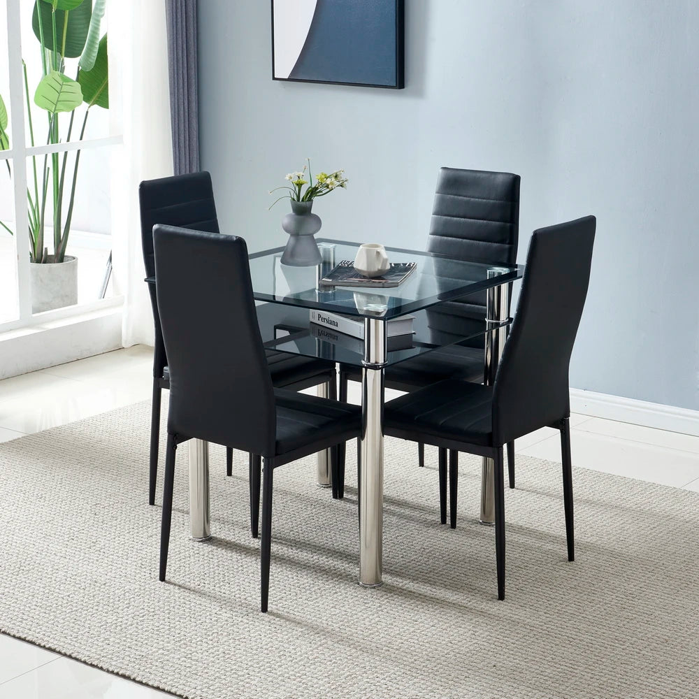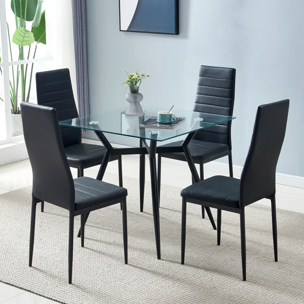 4pcs Elegant Assembled Stripping Texture High Backrest Dining Chairs Black(Replace encoding:13028198-18410366)
