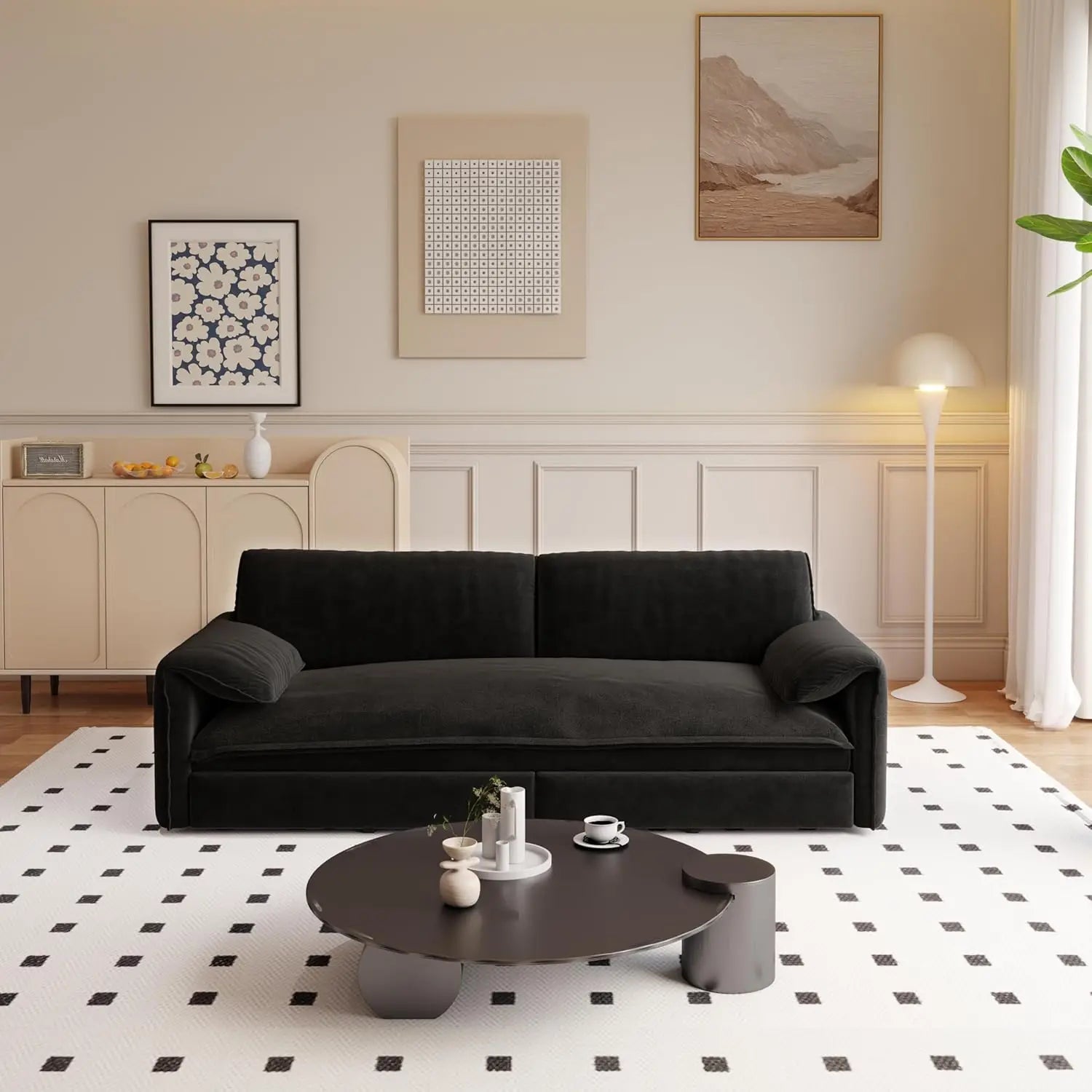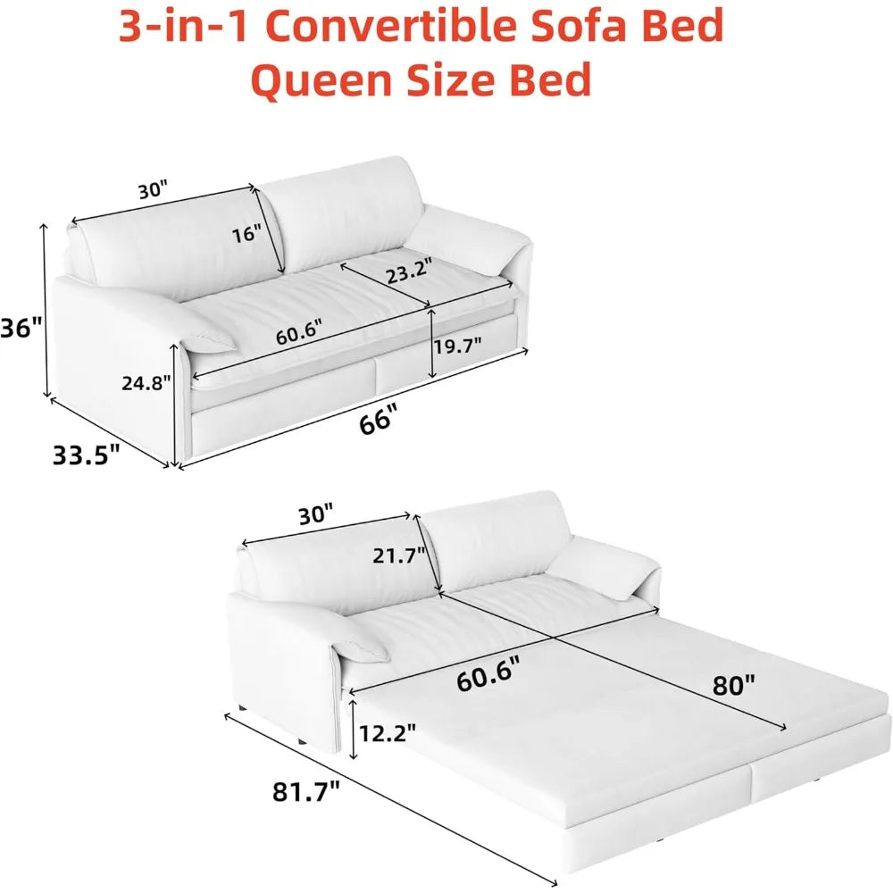 66" Queen Size Pull Out Sofa Bed, 3-in-1 Convertible Sleeper Sofa with Side Storage, Modern Velvet Loveseat Bed, for Living Room