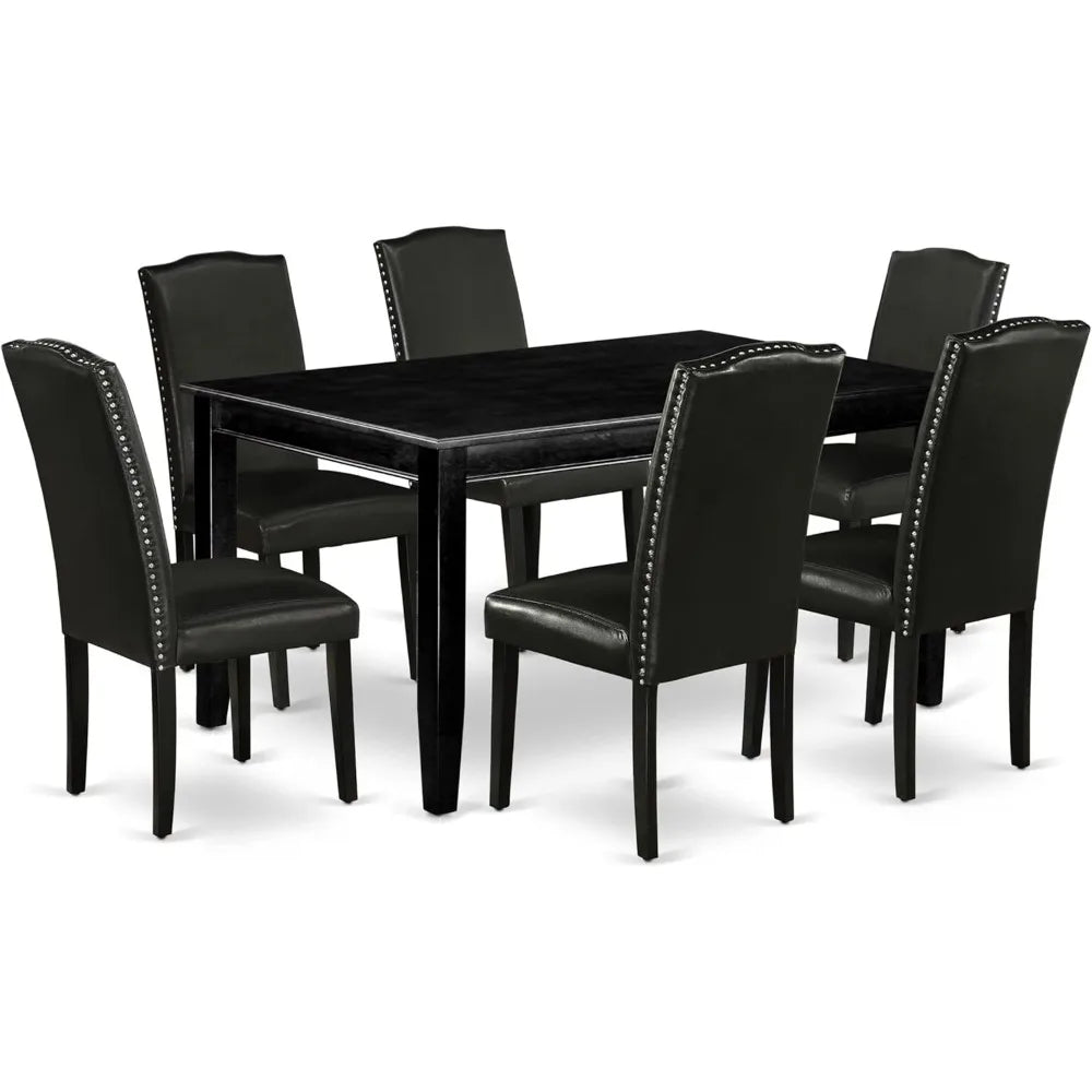 7-Piece Dining Set with Rectangular Table and 6 Black Faux Leather Chairs