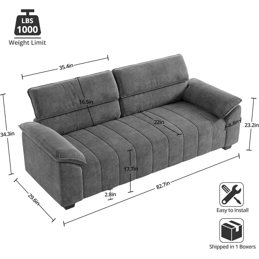 82.7" Sofa, Comfy Sofa Couch with Deep Seats, Modern Sofa Couch- 3 Seater Sofa, Easy Assembly Oversized Loveseat