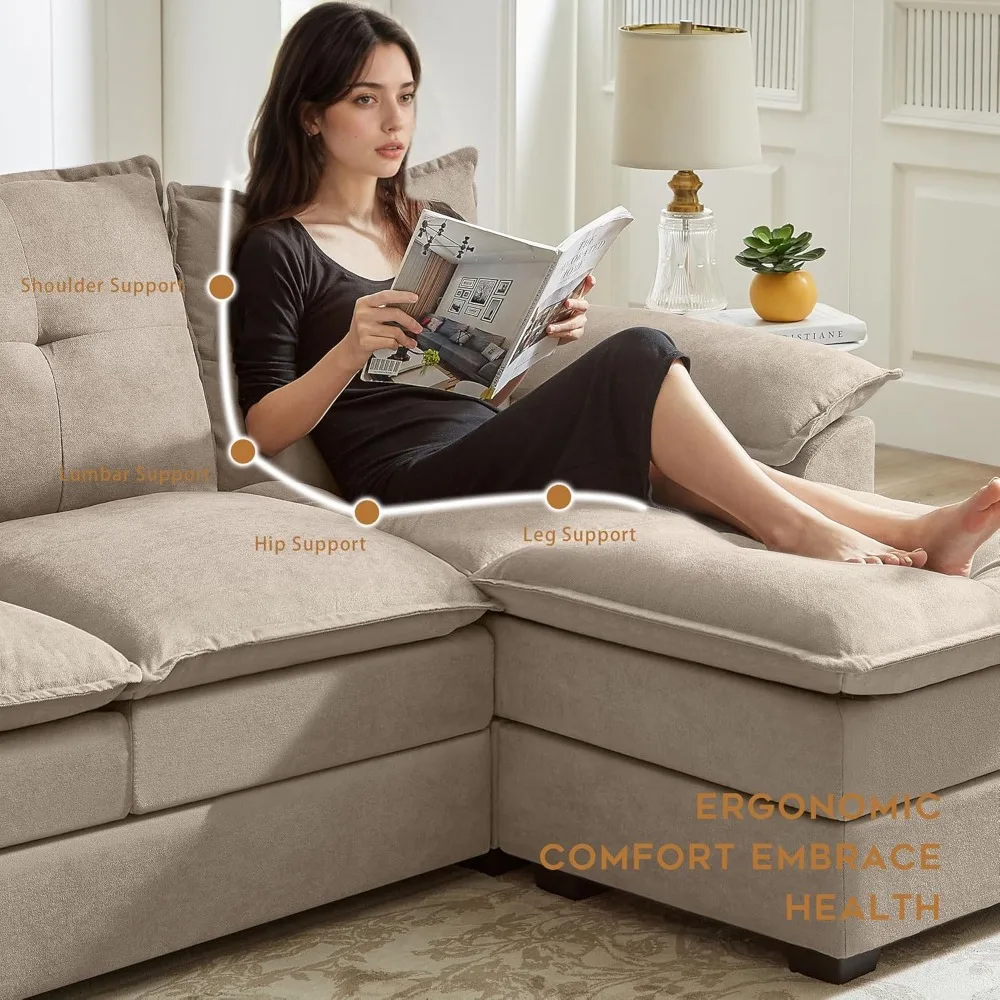 • Comfy Cloud Couch: Cloud sofa is designed with an exceptional focus on comfort, The double-layer seat cushions are filled with high-resiliency memory sponge, providing a cloud-like seating experience, it brings the soft, and cozy cloud feel into your home for maximum relaxation