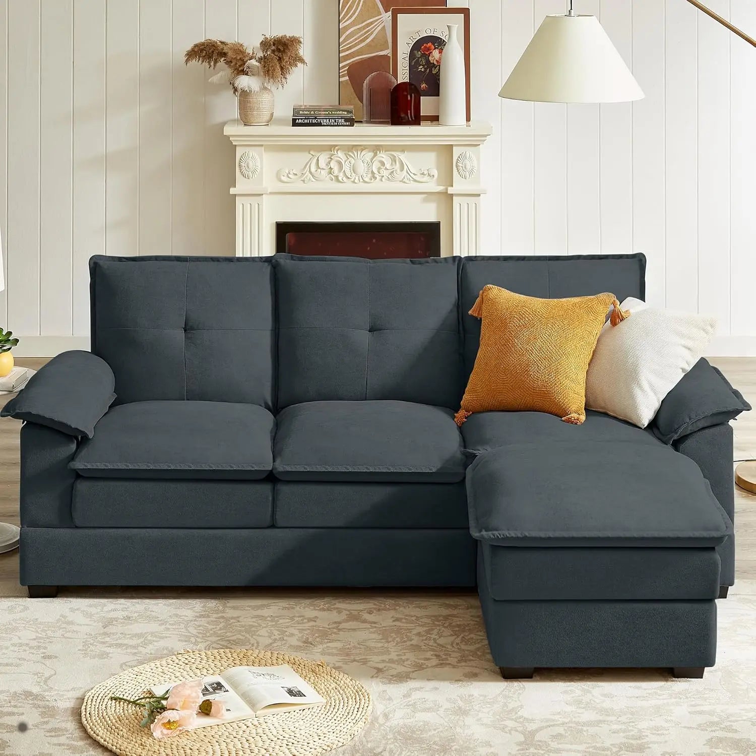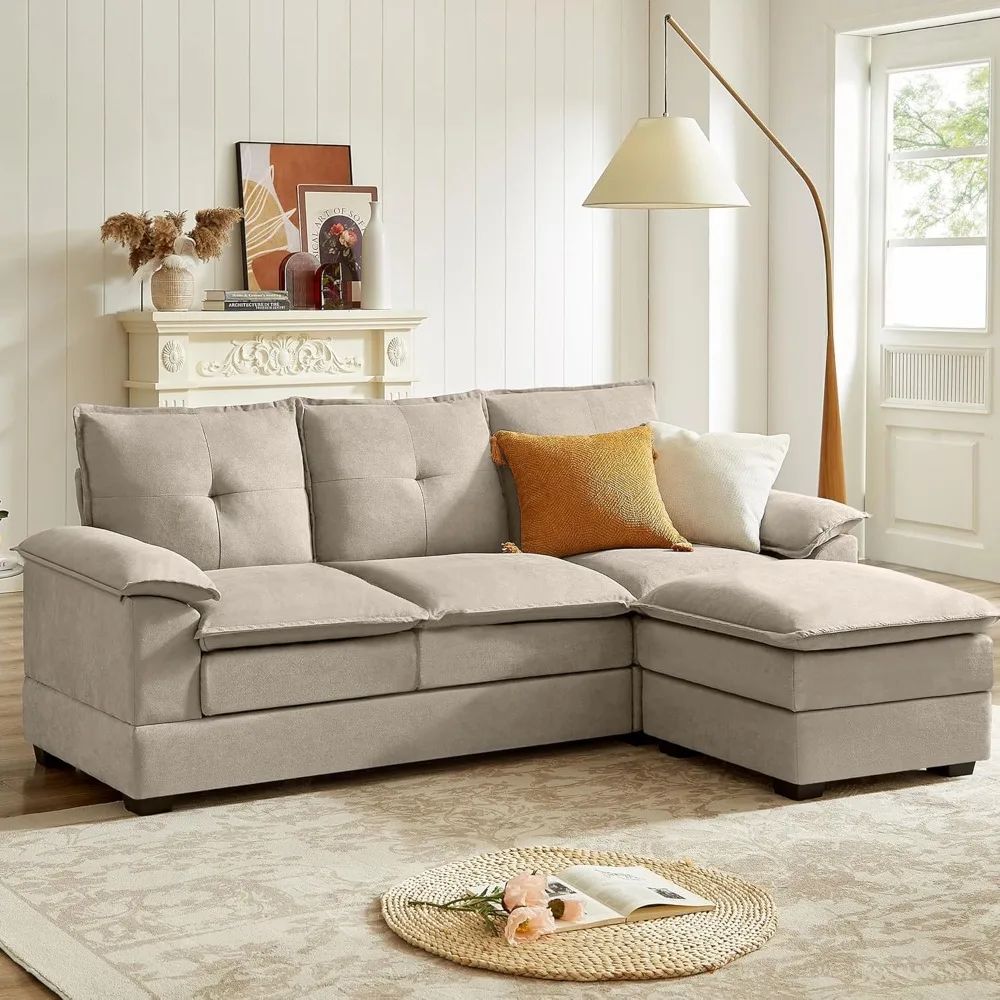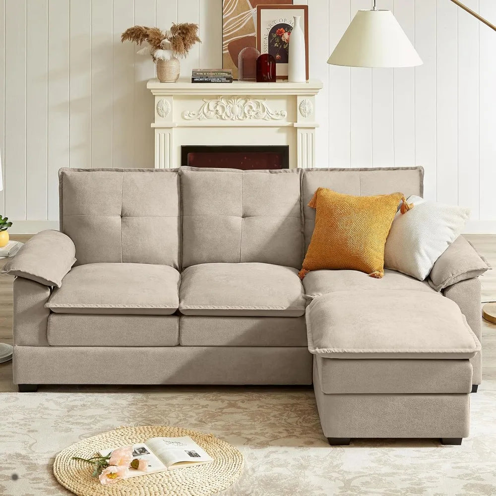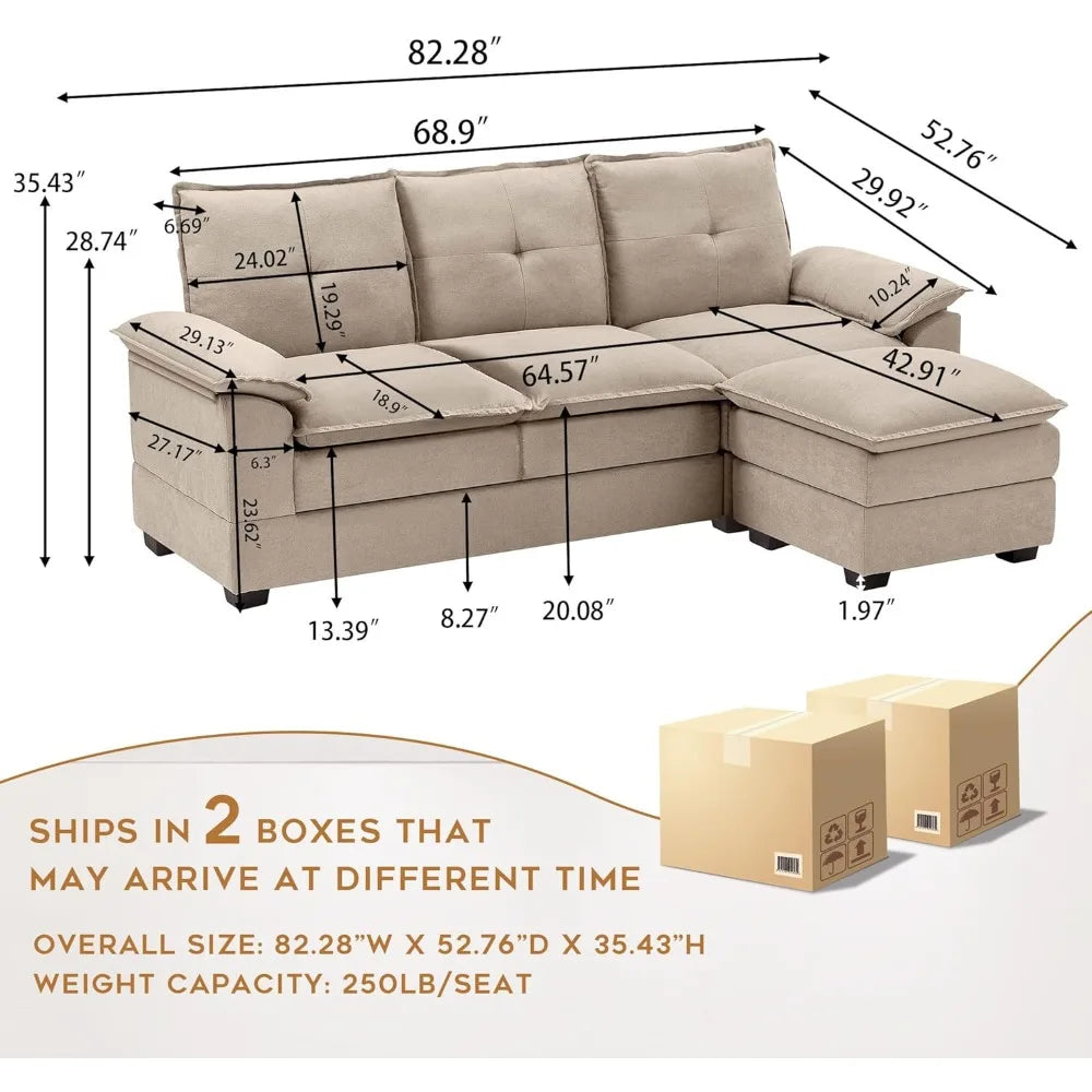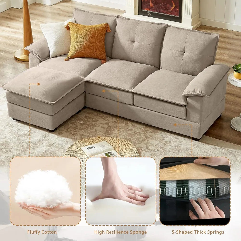 82" Convertible Sectional Sofa, L-Shaped Comfy Cloud Couch with Reversible Chaise and Padded Armrests, Modern Polyester 3 Seat
