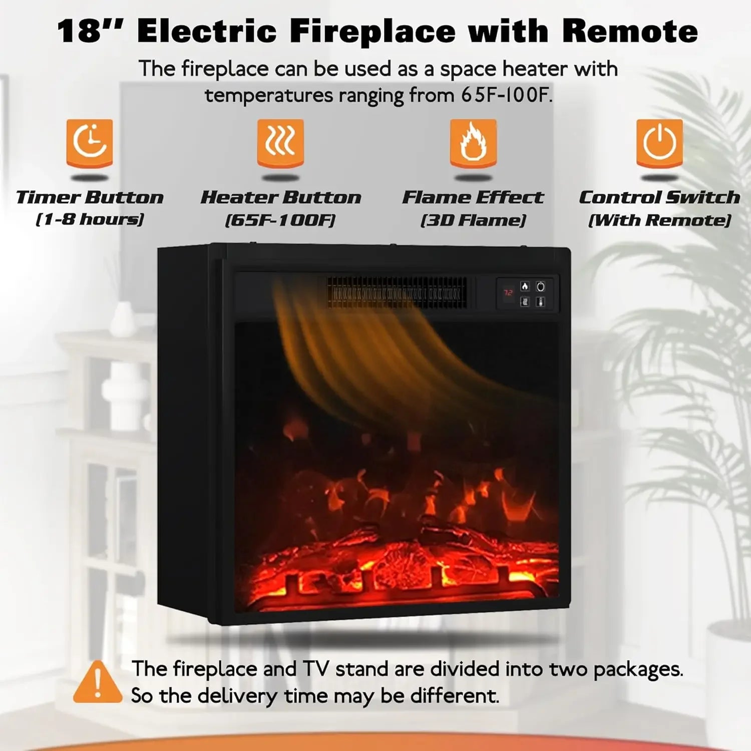 Corner Fireplace TV Stand for Television up to 55" with Storage Cabinets, Entertainment Center, Media Console for Living Room, Bedroom, White&Rustic