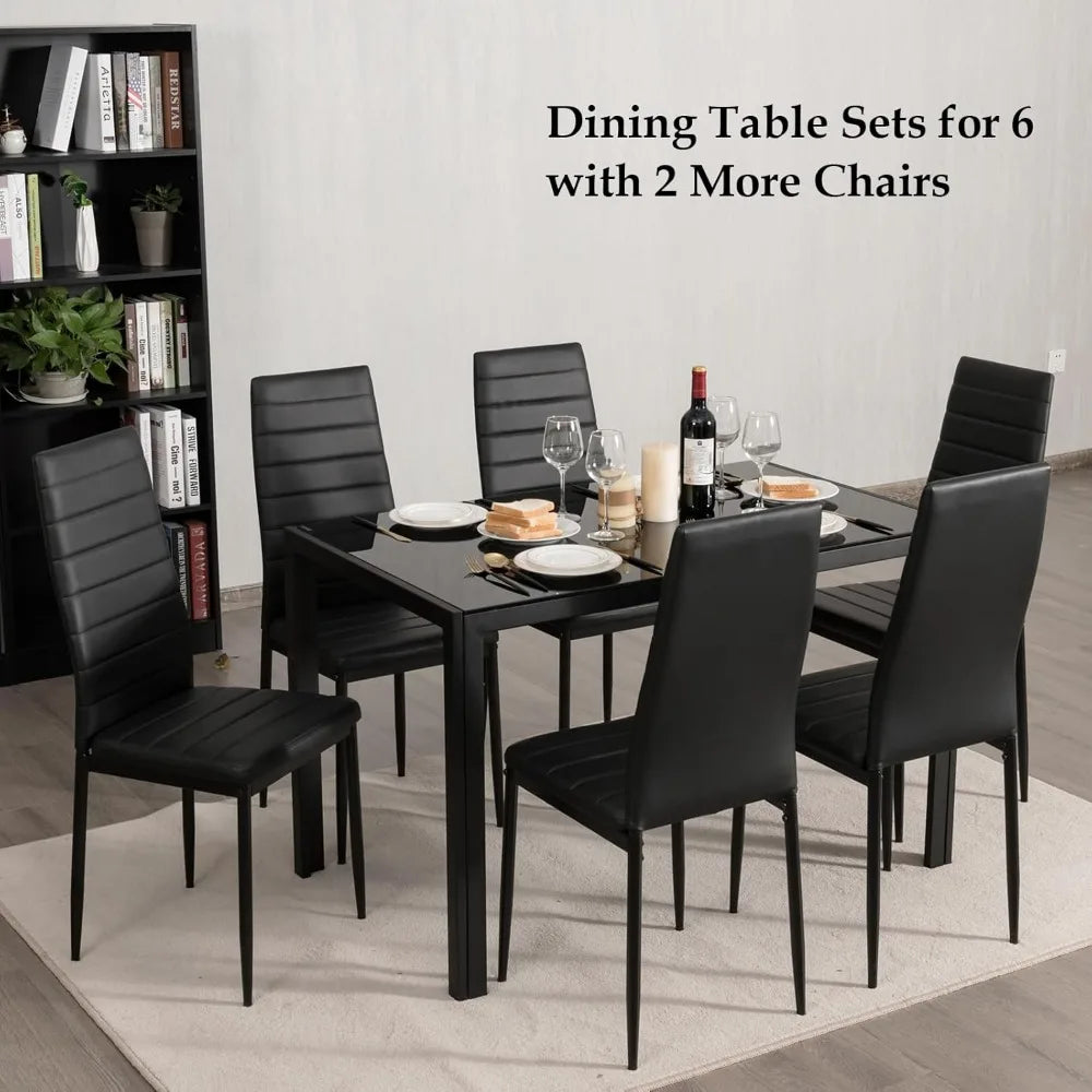 - Sleek Minimalist Design: This modern dining table set exudes a contemporary and minimalist style with its 8mm tempered glass tabletop and black metal frame, maintains the clean, modern look of glass while offering superior strength and safety, perfectly complementing modern interior decor.