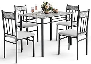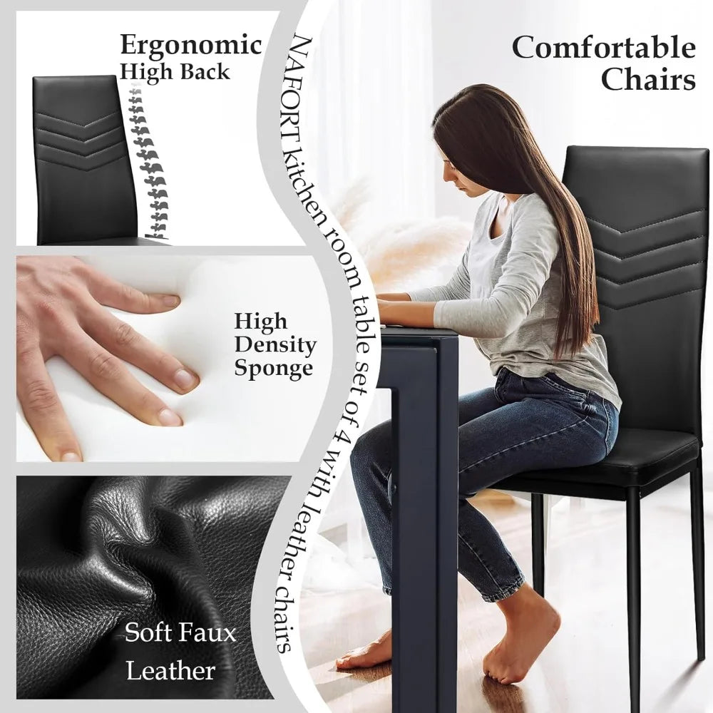- Ultimate Comfort: The table and chairs set includes 4 faux leather chairs with curved high backs and uptilt upholstered seats, providing ergonomic support and reducing fatigue. The dining chairs also regulate temperature, keeping you cool in the summer and warm in the winter.