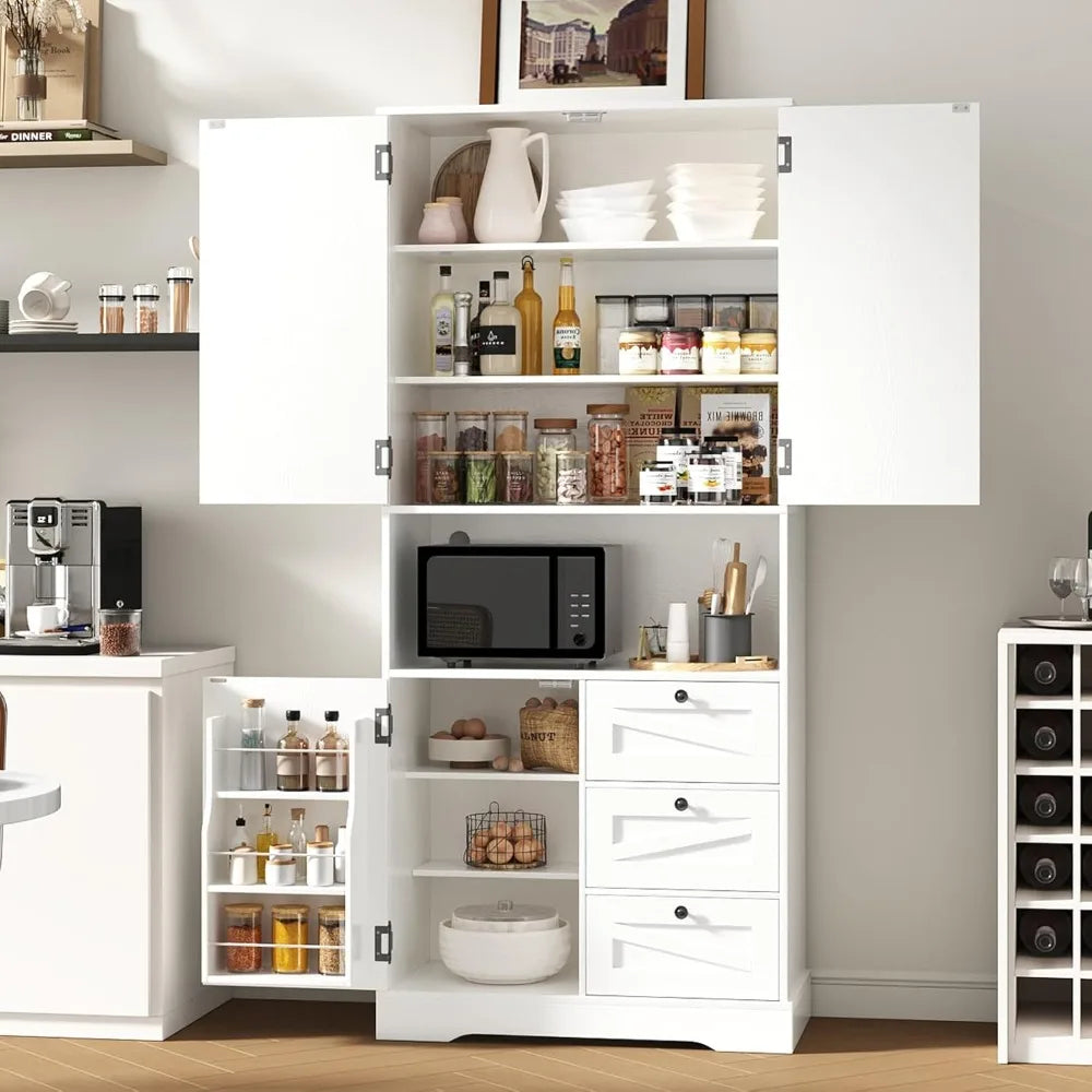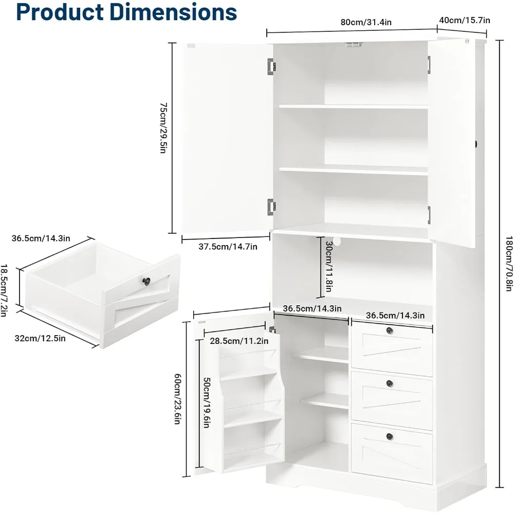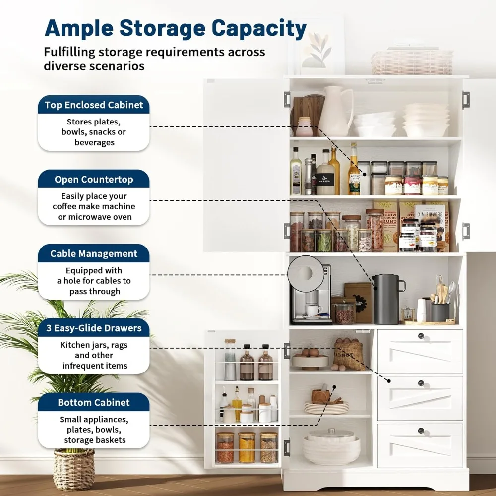 Farmhouse 71 Inch Kitchen Pantry Cabinet, Storage Cabinet with 3 Door Shelves and 3 Drawer, Versatile Storage for Kitchen, Dinin