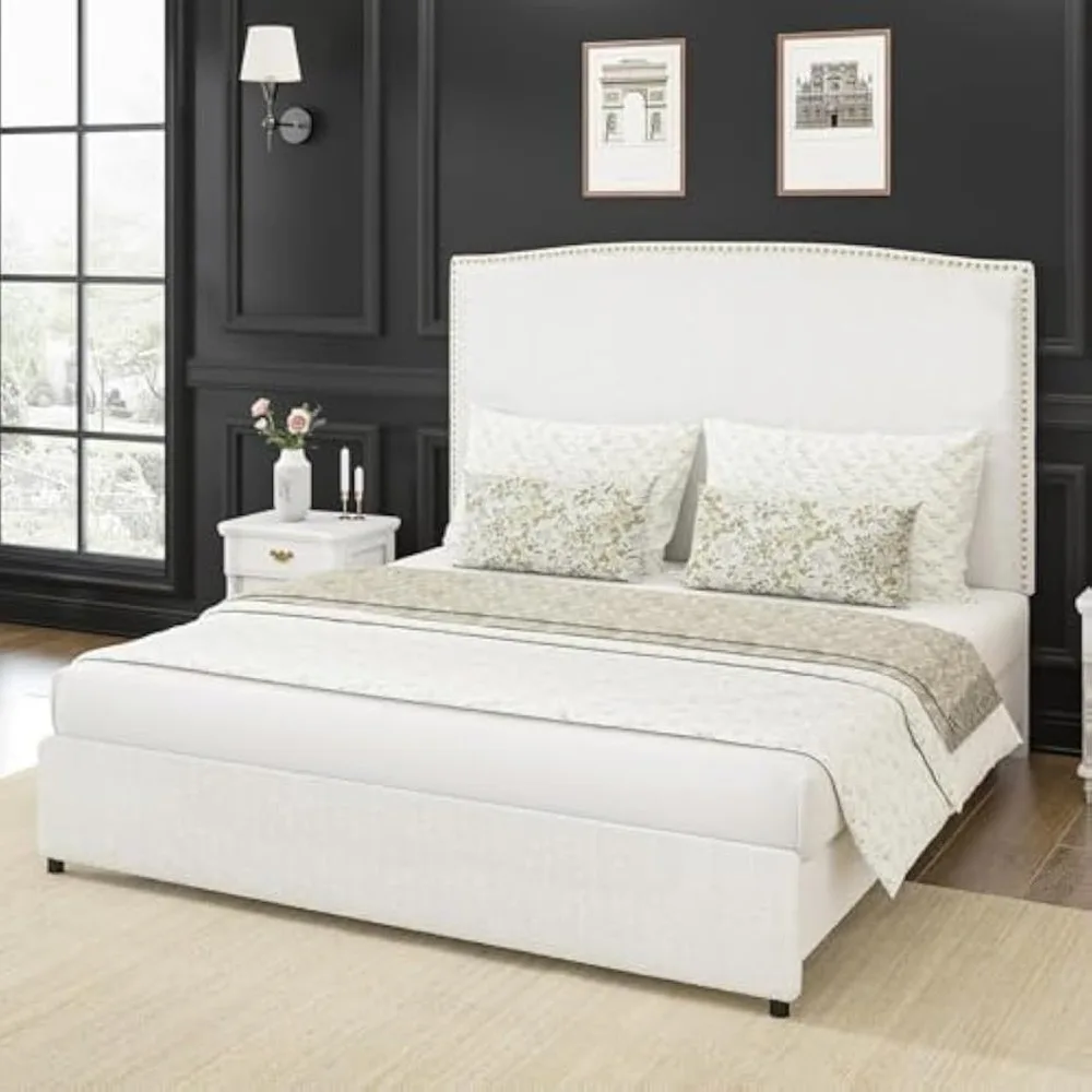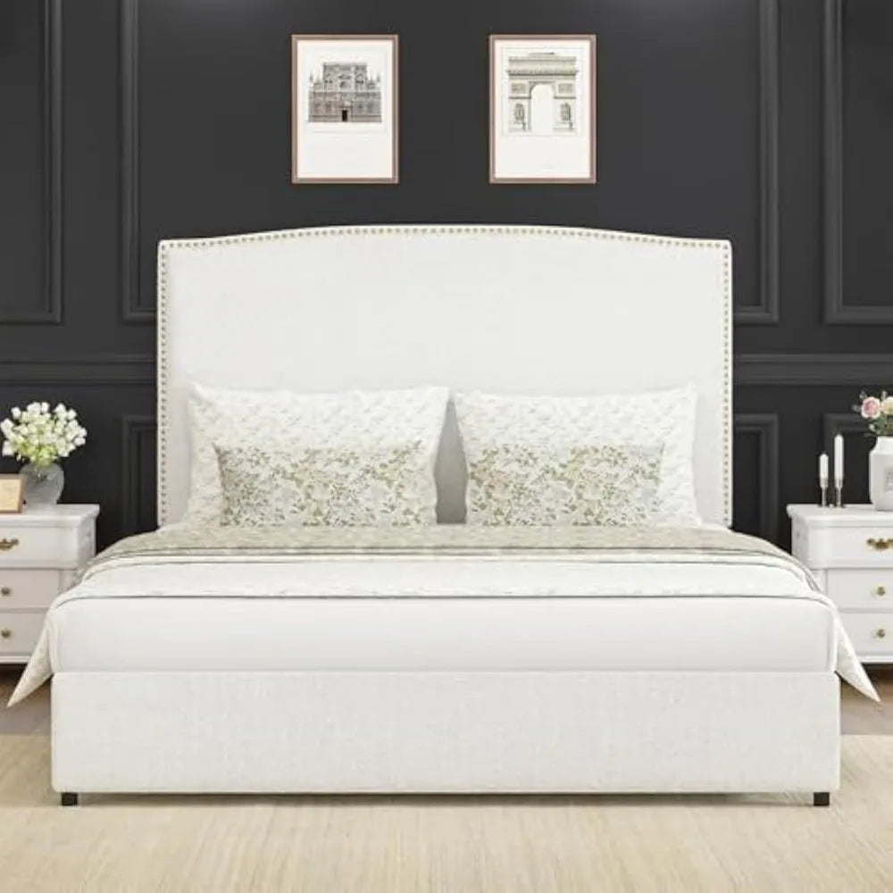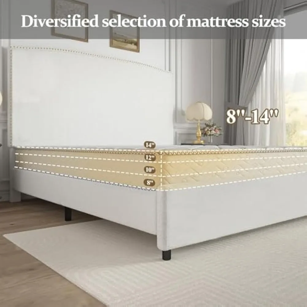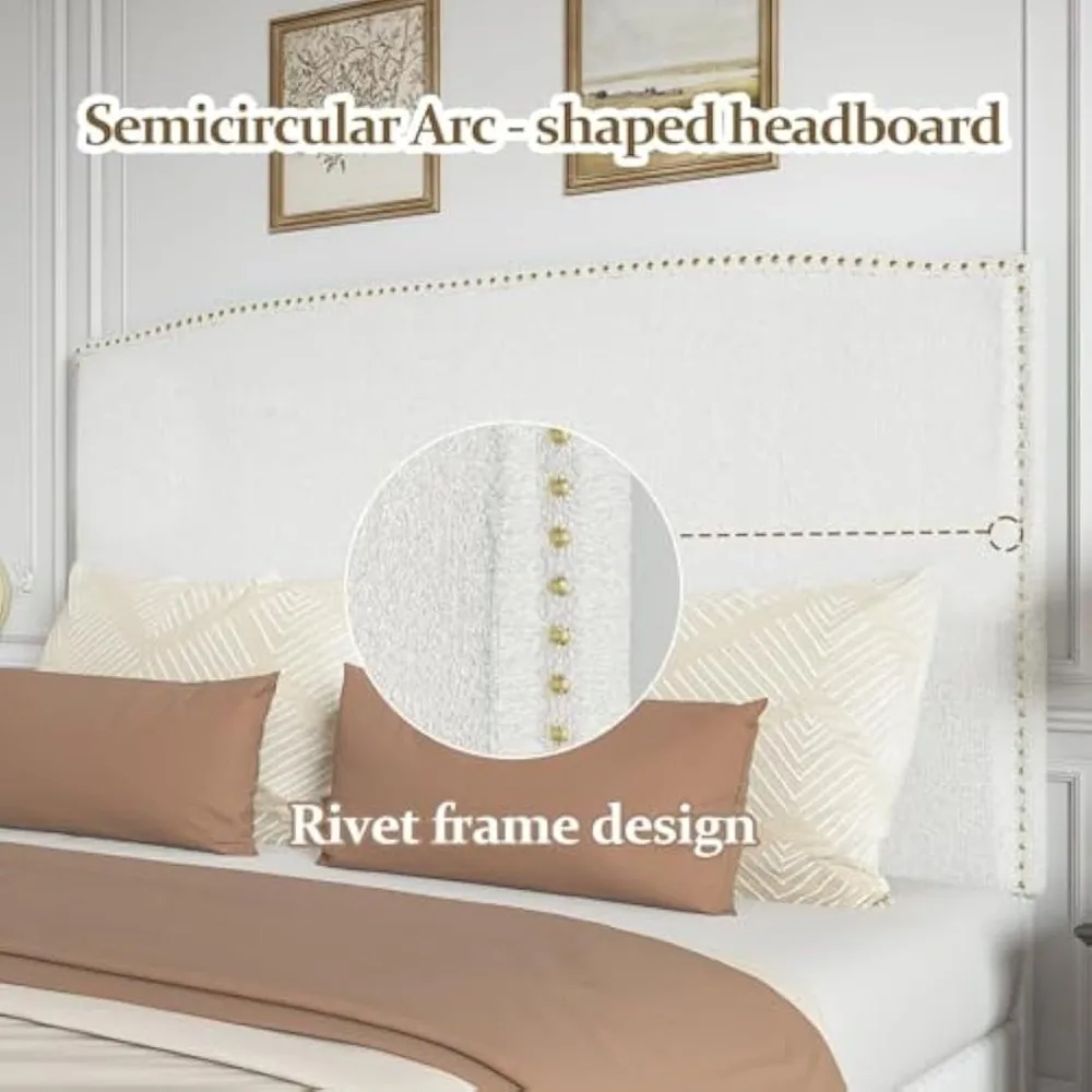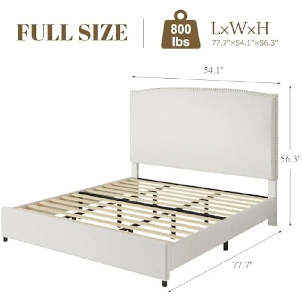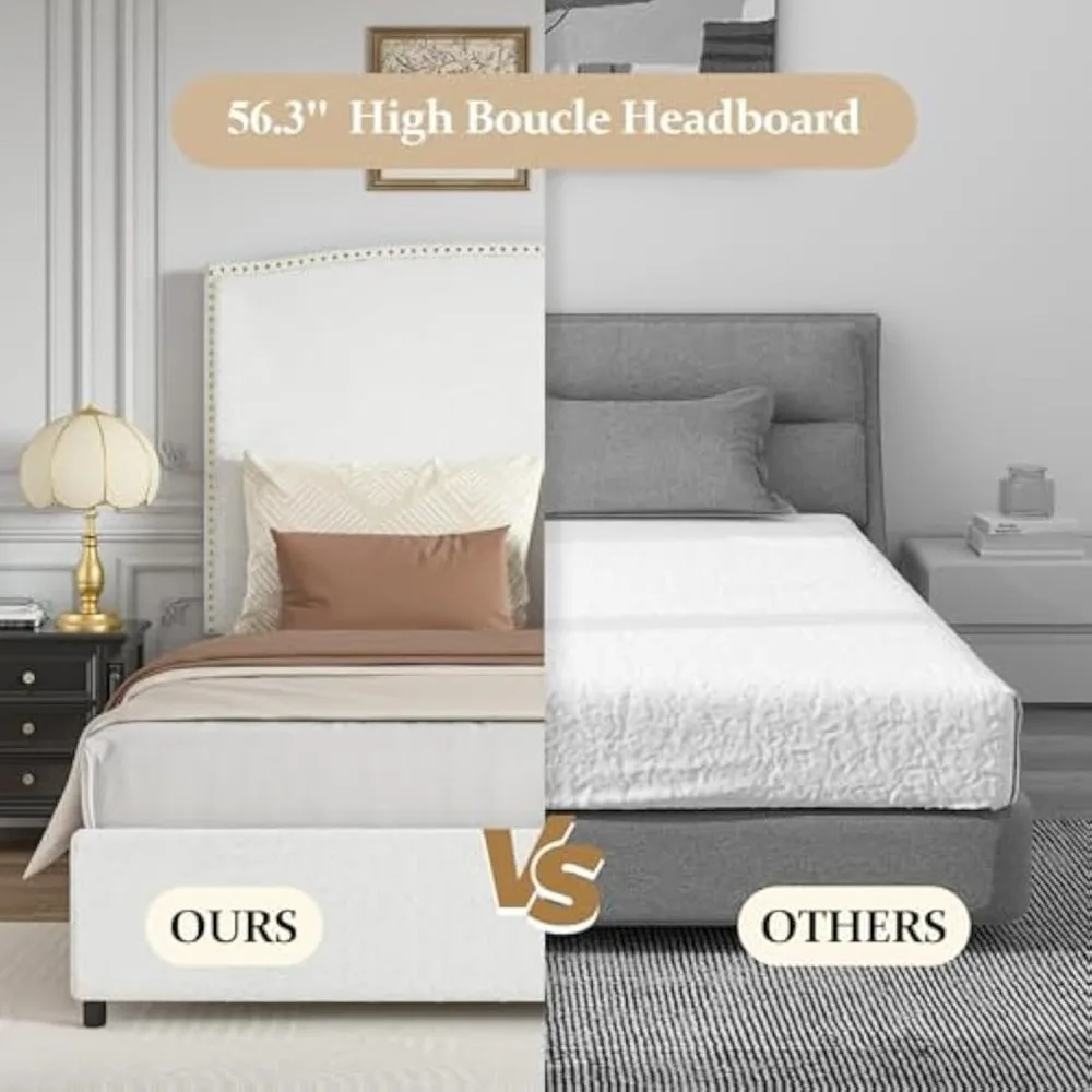 Full Bed Frame, Full Size Upholstered Platform Bed Frame with 56" Headboard, Soft Boucle Fabric, Mid-Century Modern Design