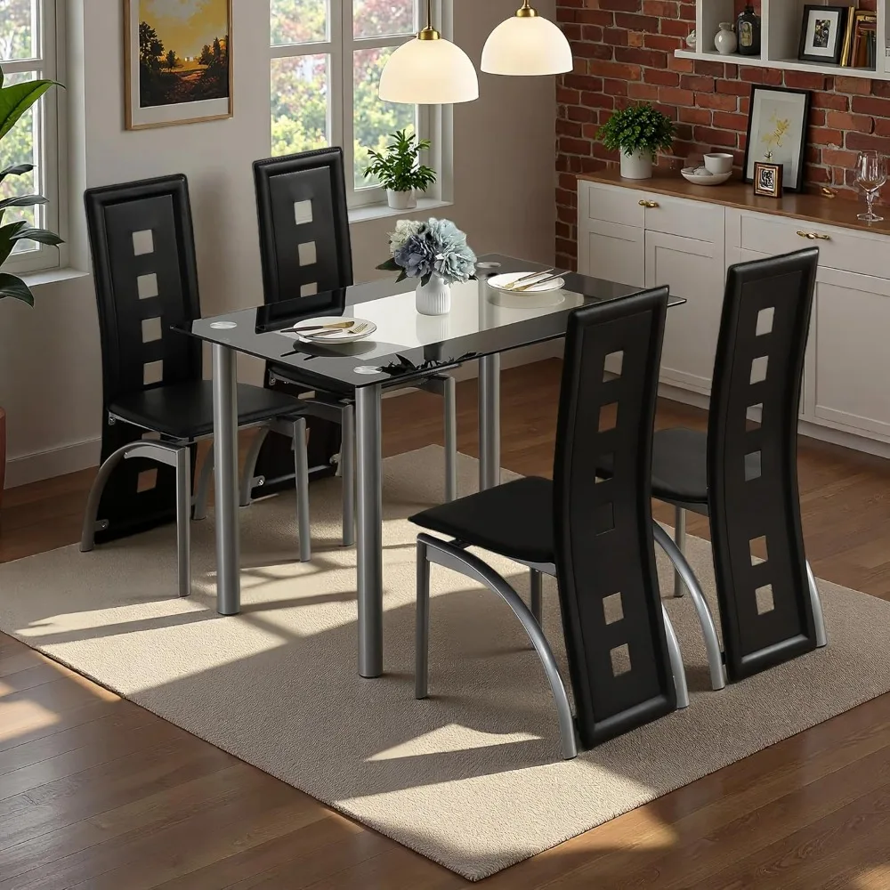Karl Home Modern 5-Piece Dining Set with Glass Table and 4 PVC Chairs for Kitchen and Breakfast Area