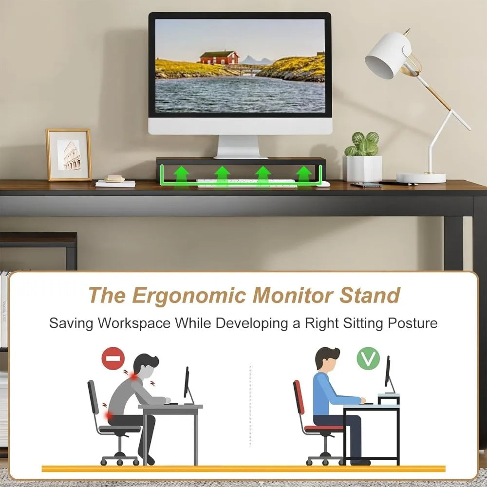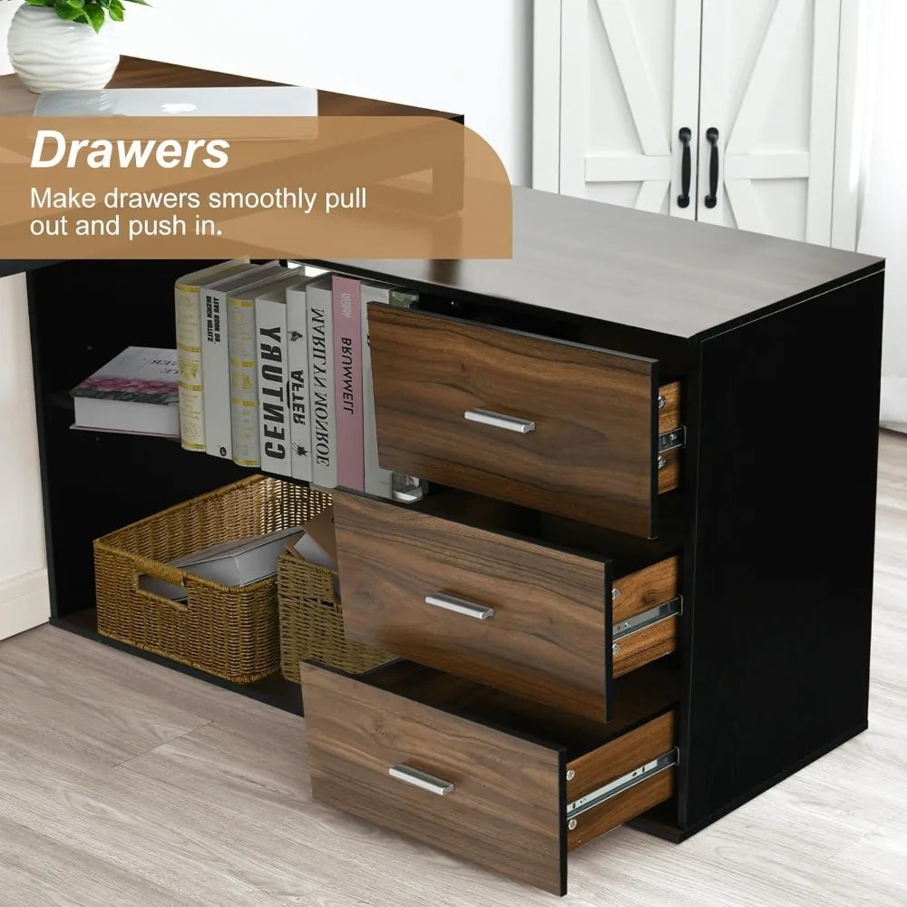- Spacious 55 Inch Desktop + Storage Cabinet: Enjoy a roomy 55-inch workspace and a built-in monitor stand. The matching storage cabinet features three smooth-gliding drawers and 3 tier storage shelves for files, supplies, or décor