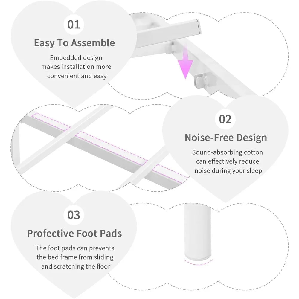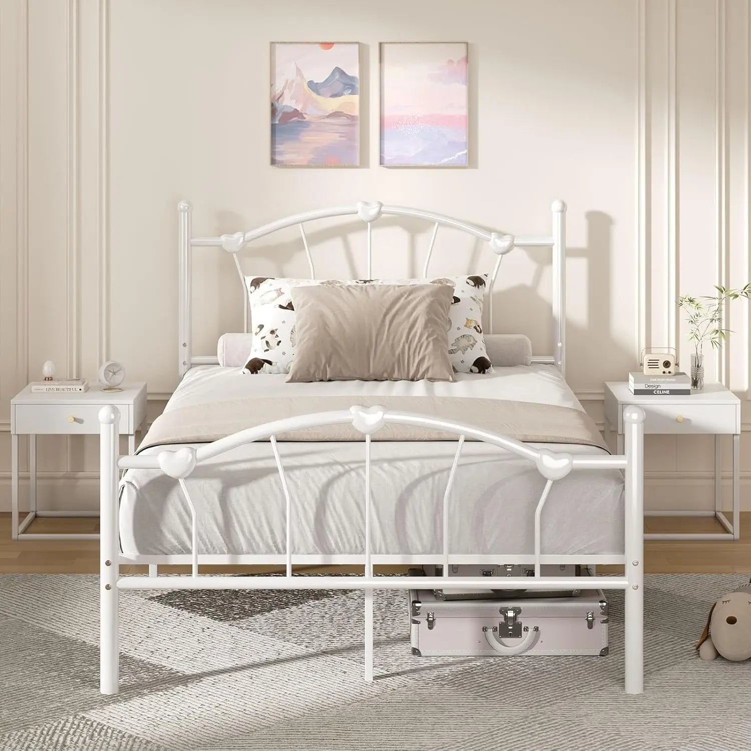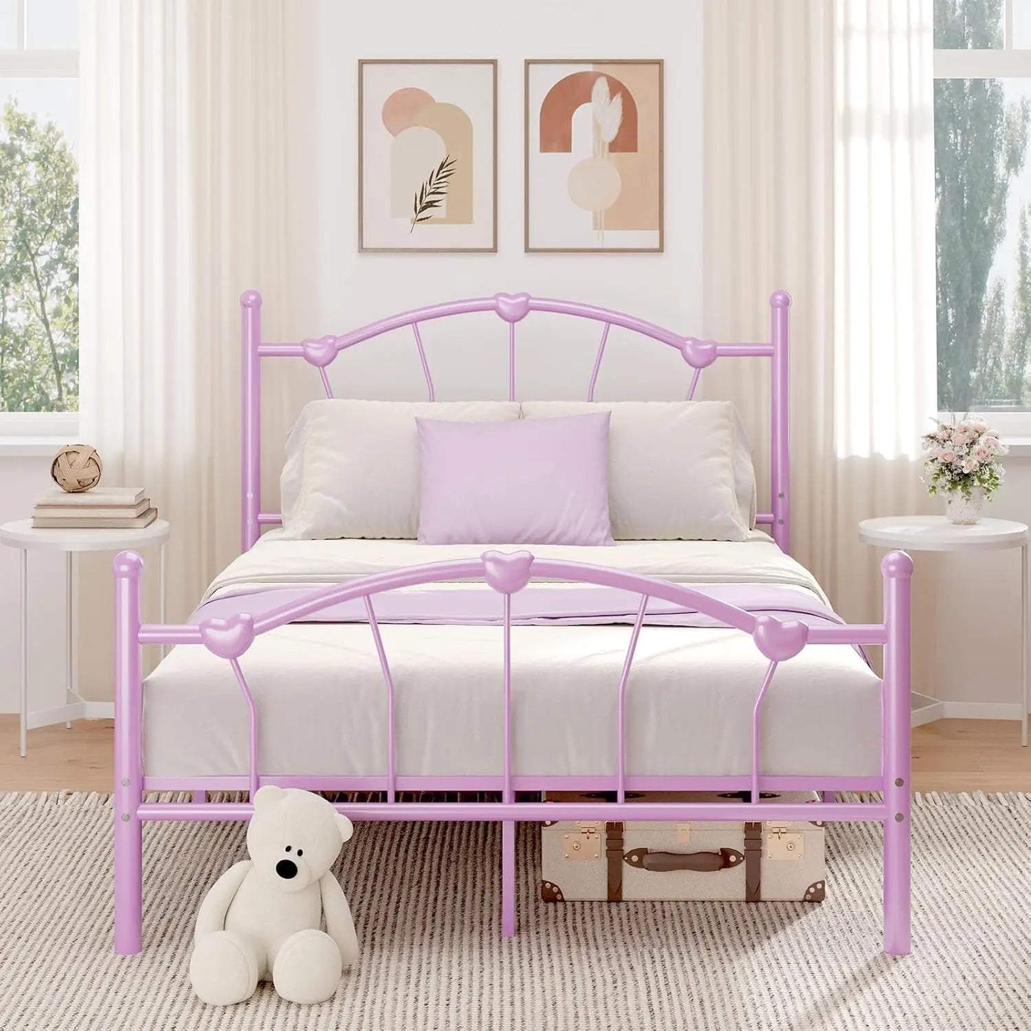 Metal Bed Frame, Bed Frame with Headboard, Heart-Shaped Decorative Headboard and Footboard, Heavy Duty Metal Slat Support