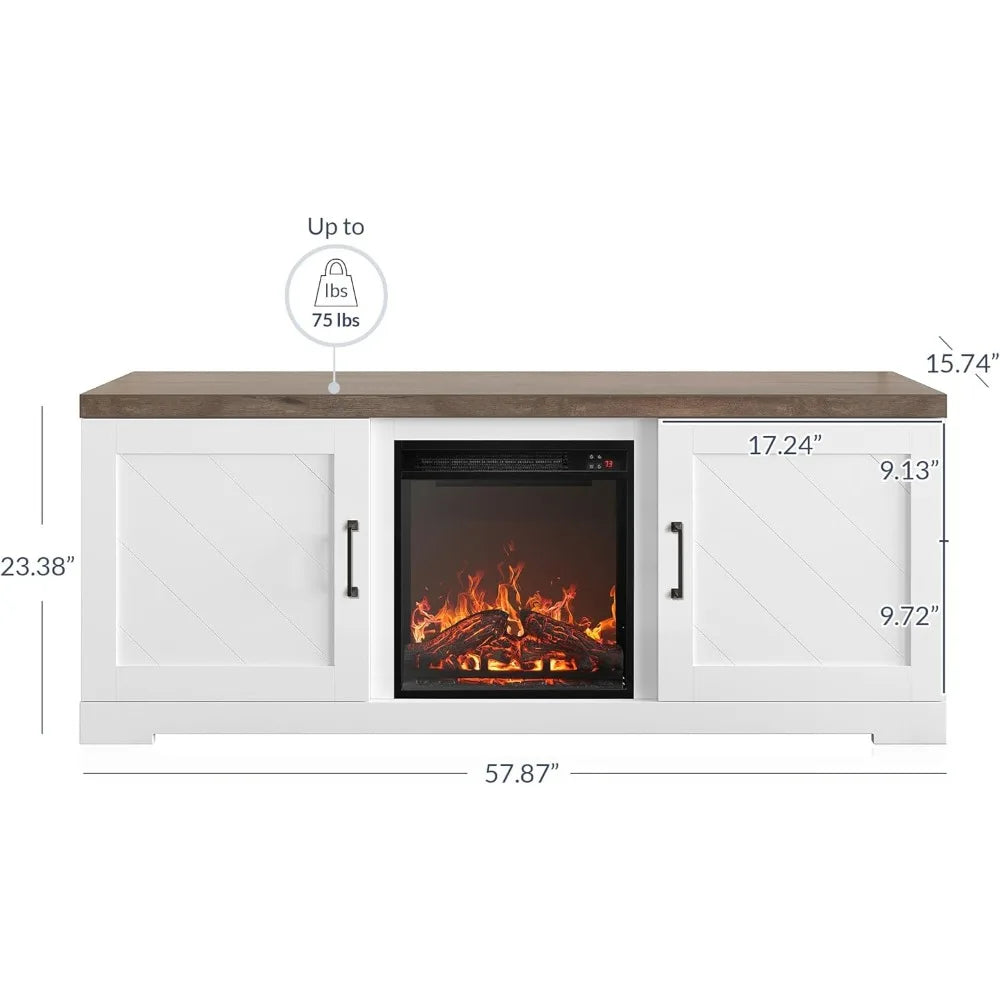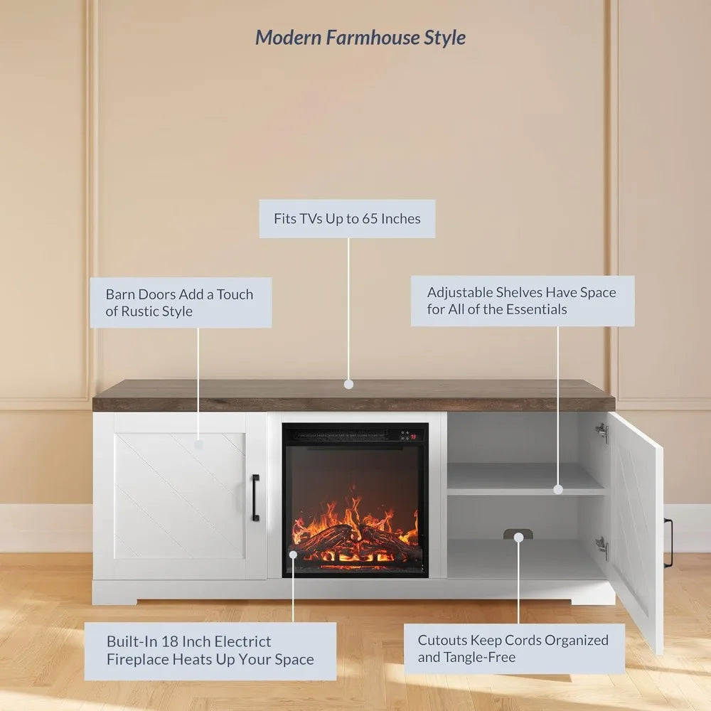 Modern 58" Farmhouse TV Stand with 18" Electric Fireplace Heater & Media Entertainment Center for TV up to 65", Console Table w