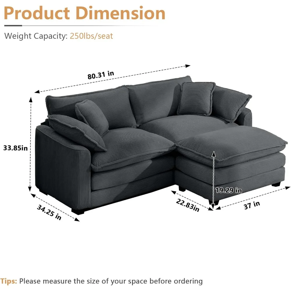 Oversized Modular Sectional Sofa, 80'' Modern Corduroy Comfy Cloud Couches for Living Room Apartment, L-Shaped Deep Seat
