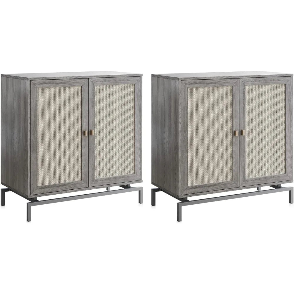 Set of 2 Sideboard Buffet Cabinet with Rattan Doors, Boho Buffet Table with Metal Base and Adjustable Shelves Accent Cabinet