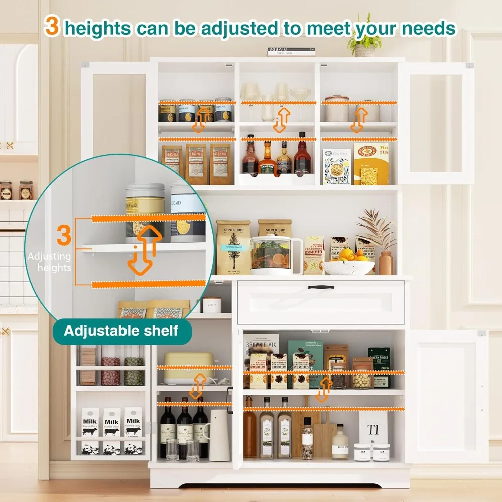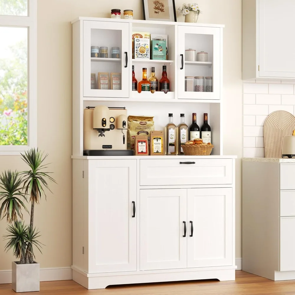 - Multi Scene: Except for being used as a food pantry cabinet in the kitchen, this hutch cabinet also works well as coffee bar, buffet cabinet in the dining room or as bar cabinet in the living room. It's the perfect pick that any family will love to fill their home.