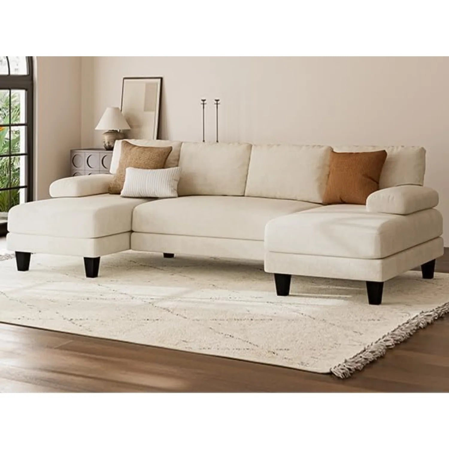 U Shaped Sectional Couches for Living Room,111 Inch Modular Sofa with Double Chaise,Large Lounge Couch for Apartment,Warm White