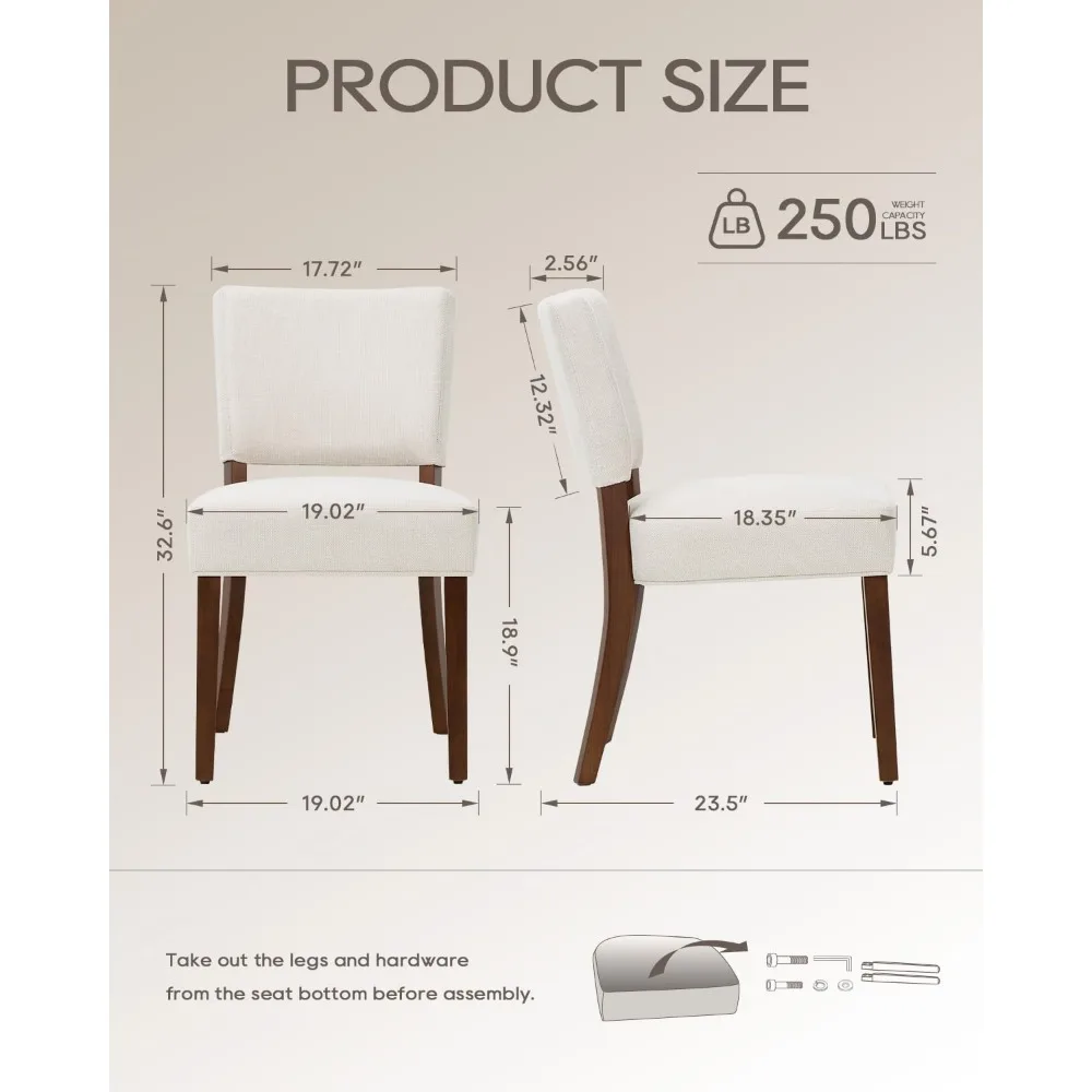 - **Sturdy Wood-Legged Dining Chairs** These stylish modern chairs combine durability with comfort, featuring a 250-lb weight capacity for lasting daily use - perfect for casual meals, dinner parties, or as replacement seating in any dining space.
