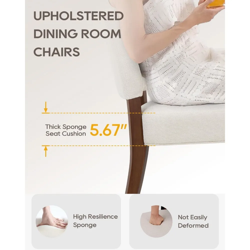 Upholstered Dining Chairs Set of 4 - Modern Farmhouse Kitchen Chairs, Mid-Back Dining Room Chairs with Wooden Legs,Beige