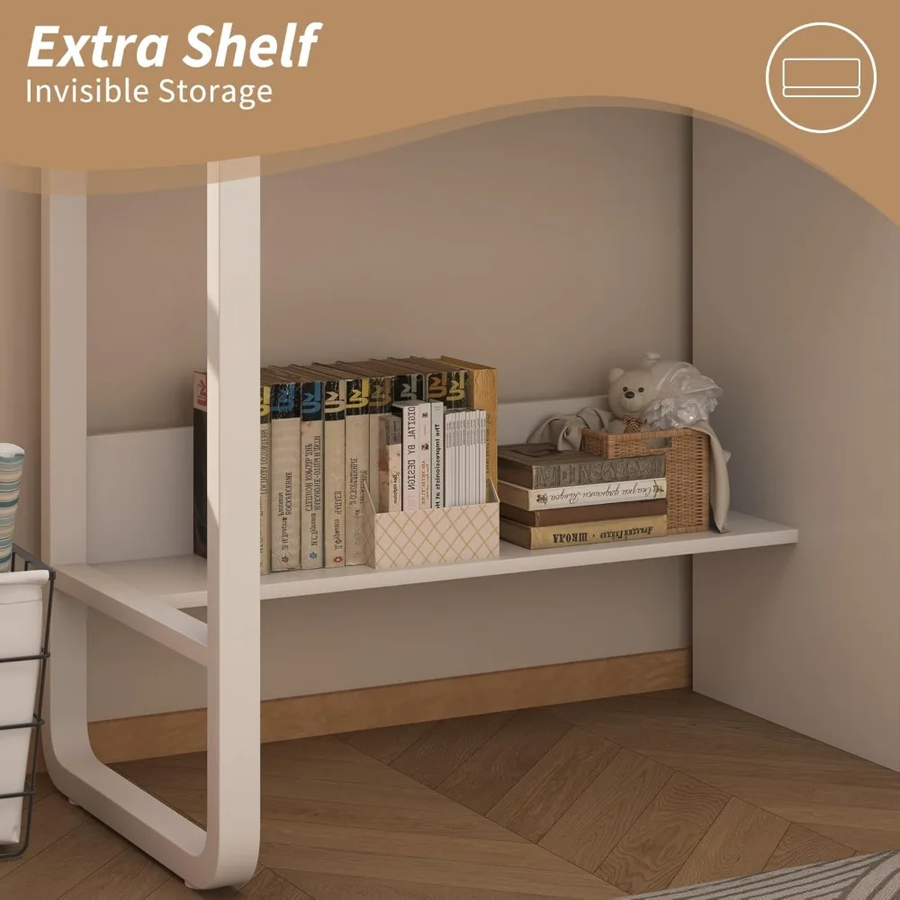 - 【【Stable U-Shaped Desk Legs】The U-shaped 47 inch desk with drawers legs are very sturdy and not easily deformed, which can provide stable support for this white kids desk with storage and greatly reduce the wobbling or instability that occurs during the use of the desk with drawers, enhancing the user experience